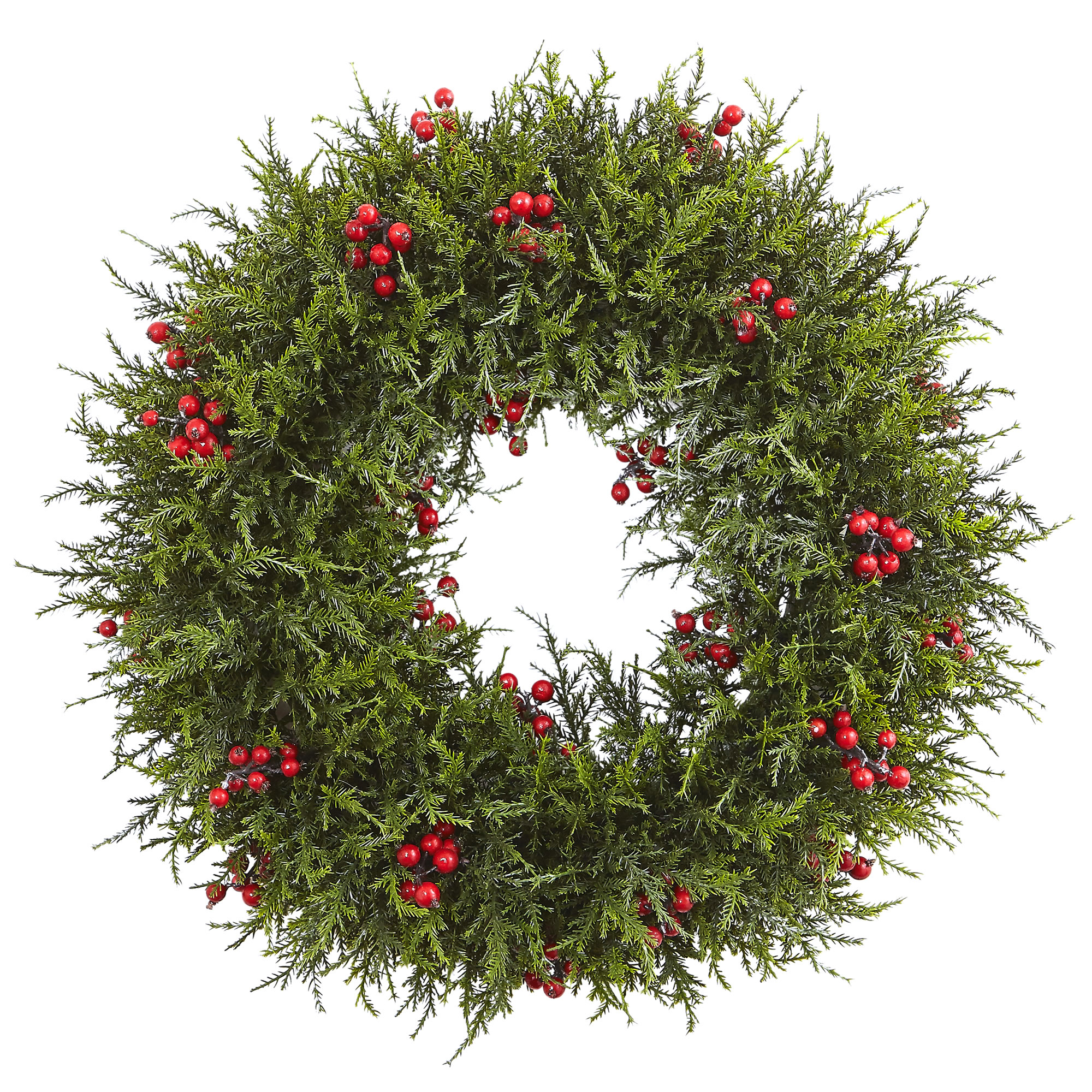 The perfect look for the holidays whether it's in your home or office, this lovely cedar berry wreath will be a favorite year after year. With soft green cedar pointing in every direction, accented by lush-looking berries, it's the ideal size for almost any area.áThe best part is it'll always look fresh, meaning it'll be used year after year. It also makes a great gift for those that love holiday dTcor.