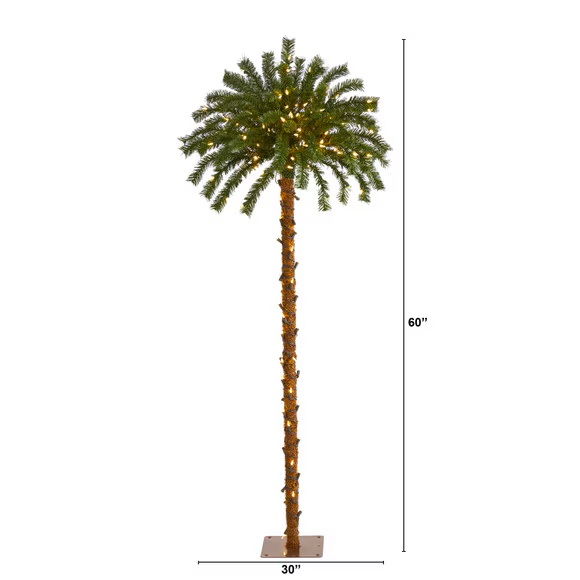 If you're looking to implement a little fun into your holiday Christmas decor why not opt for this festive artificial Christmas Palm Tree. Intricately designed to mimic the beauty of a realistic palm tree, this tropical-inspired artificial Christmas tree features 59 realistic looking tips, illuminated throughout with 150 clear, pre-strung LED lights to eliminate unsightly tangles. Carefully stabilized on a wooden pole and metal base, this 5' artificial Christmas palm tree will undoubtedly create a unique Christmas atmosphere all season long.