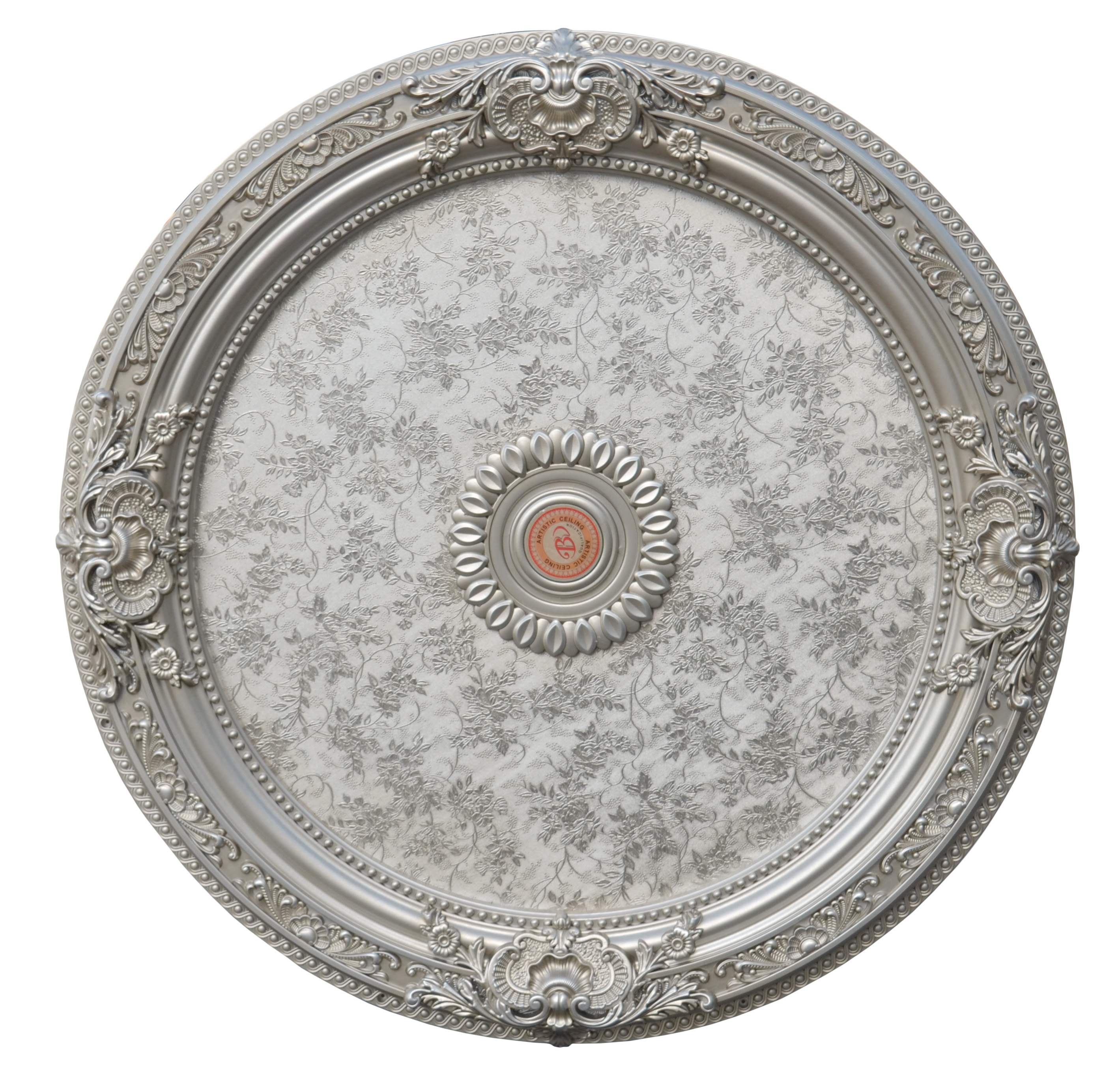 The Antique Silver Round Chandelier Ceiling Medallion 36 Diameter is a favorite sized, fully assembled and intricately finished Ceiling Medallion. The finish offers an old-world warmth in its Design. The finished outer frame of Antique silver surrounds an inner silver field of flowers and vines. This finished Architectural Ceiling Medallion creates instant 3-dimensional detail to an otherwise boring plain ceiling.