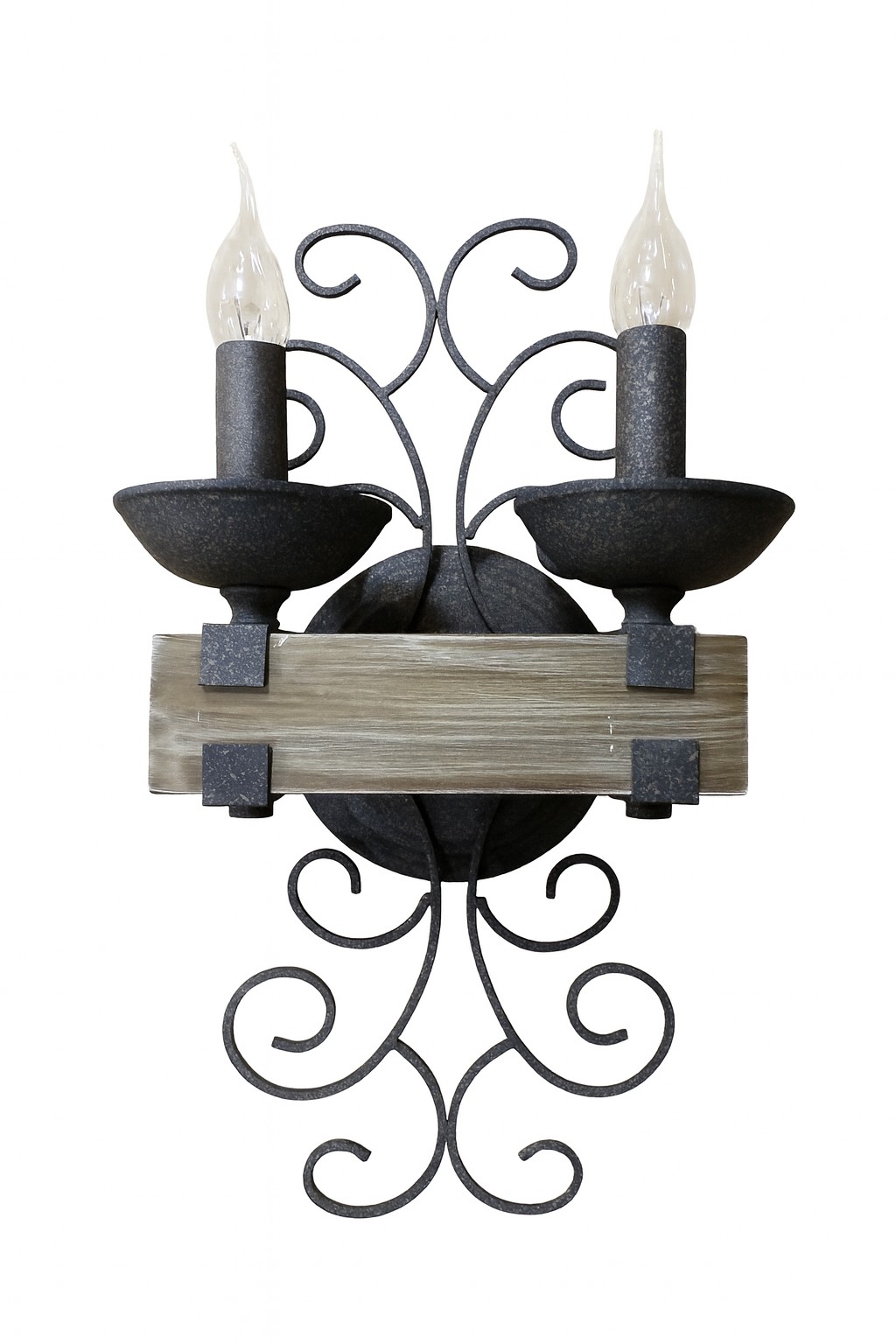 Add timeless elegance to your home with this beautifully crafted wall sconce. Featuring a rustic metal frame with intricate scrollwork and a distressed wood accent, this two-light fixture blends vintage charm with modern functionality. Perfect for enhancing your living room, hallway, or dining area, this sconce creates a warm and inviting ambiance.