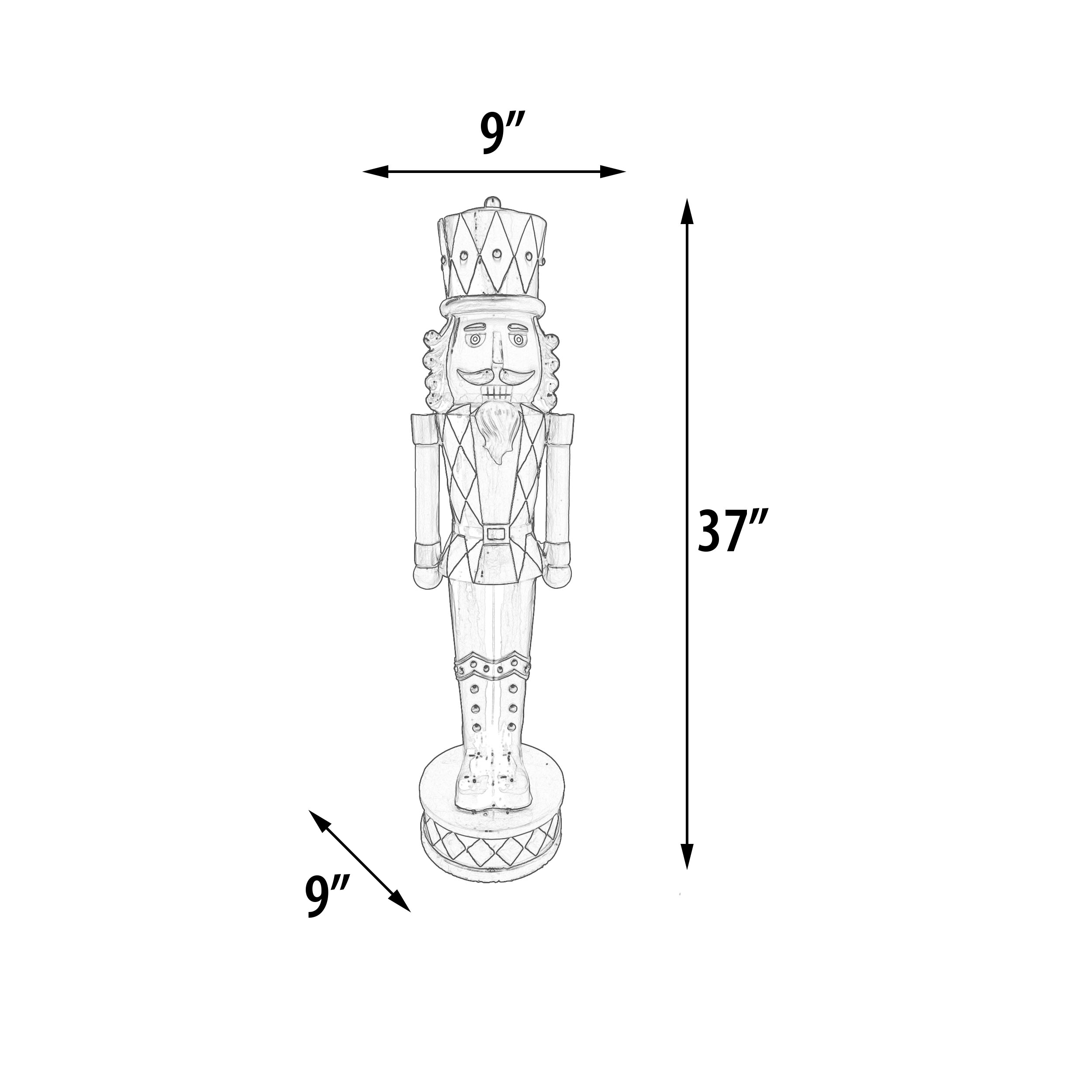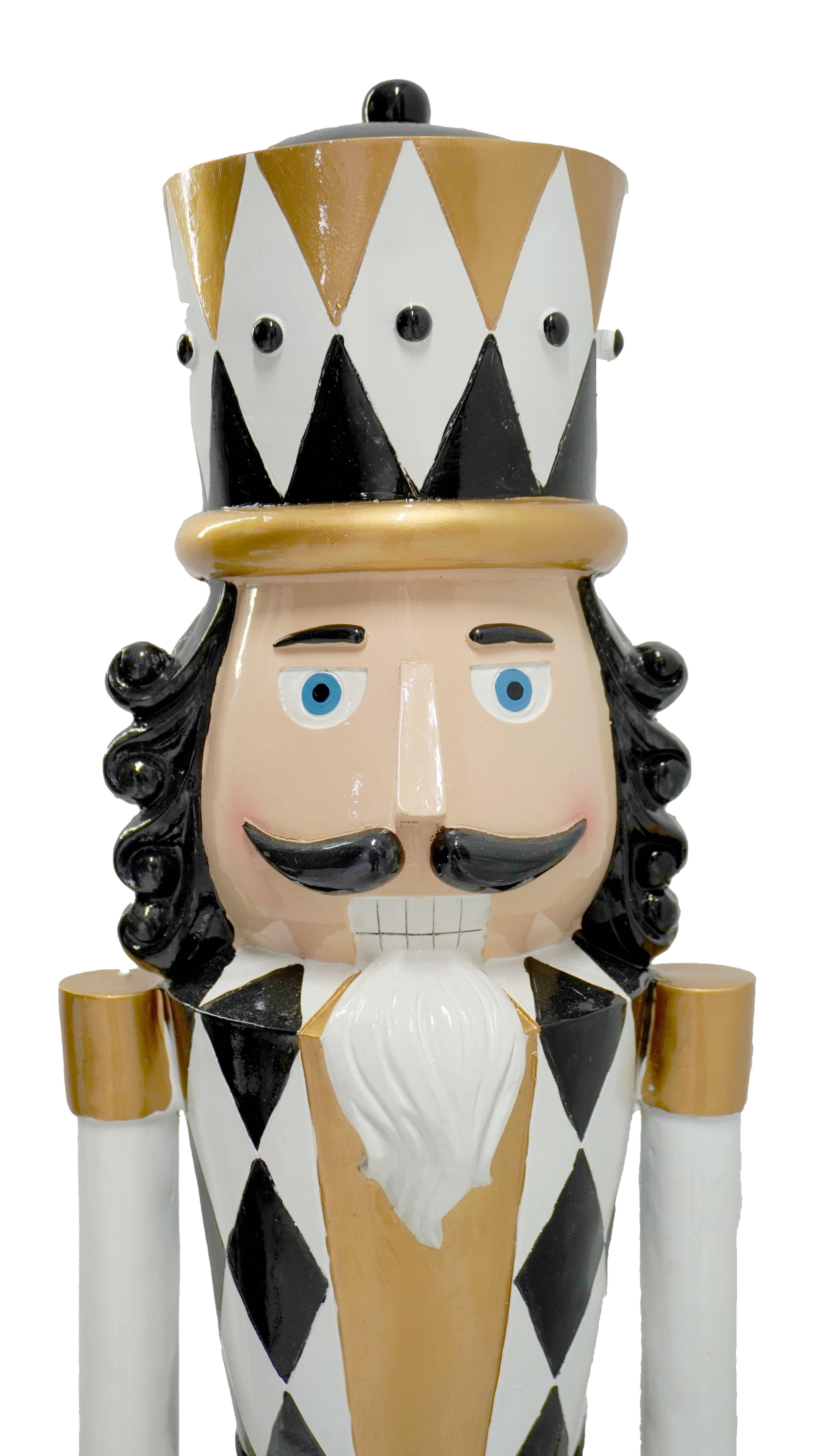 Add a touch of whimsy and holiday spirit to your home with our exquisite 38 Inch Nutcracker with White, Black and Gold Coat. This stunning piece is crafted from durable resin and features intricate details and vibrant colors, making it a perfect centerpiece for your festive decor. With its charming design and impressive height, this nutcracker is sure to become a beloved addition to your holiday traditions. Old German folklore says that nutcrackers symbolize good luck and help to keep dangers away. Since then, nutcrackers have become collectors items for the holiday season. Bring joy and charm to your home this holiday season!